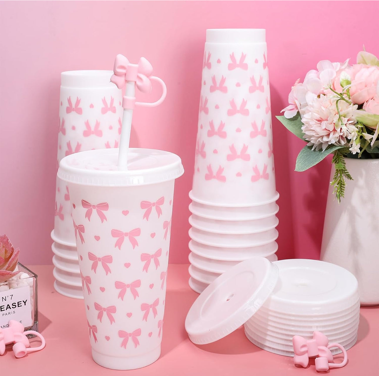 comes with Lid/Straw and bow straw topper